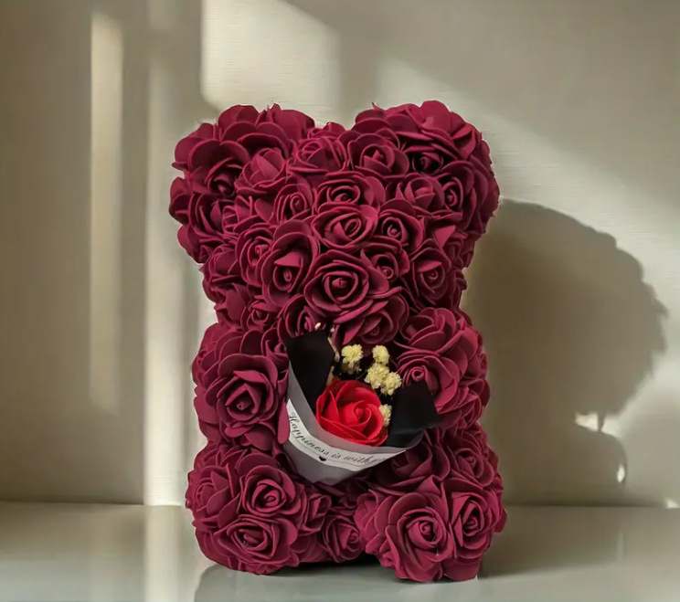 Rose Bear Bouquet: A unique and elegant combination of a rose bear and flower bouquet, perfect for gifting.